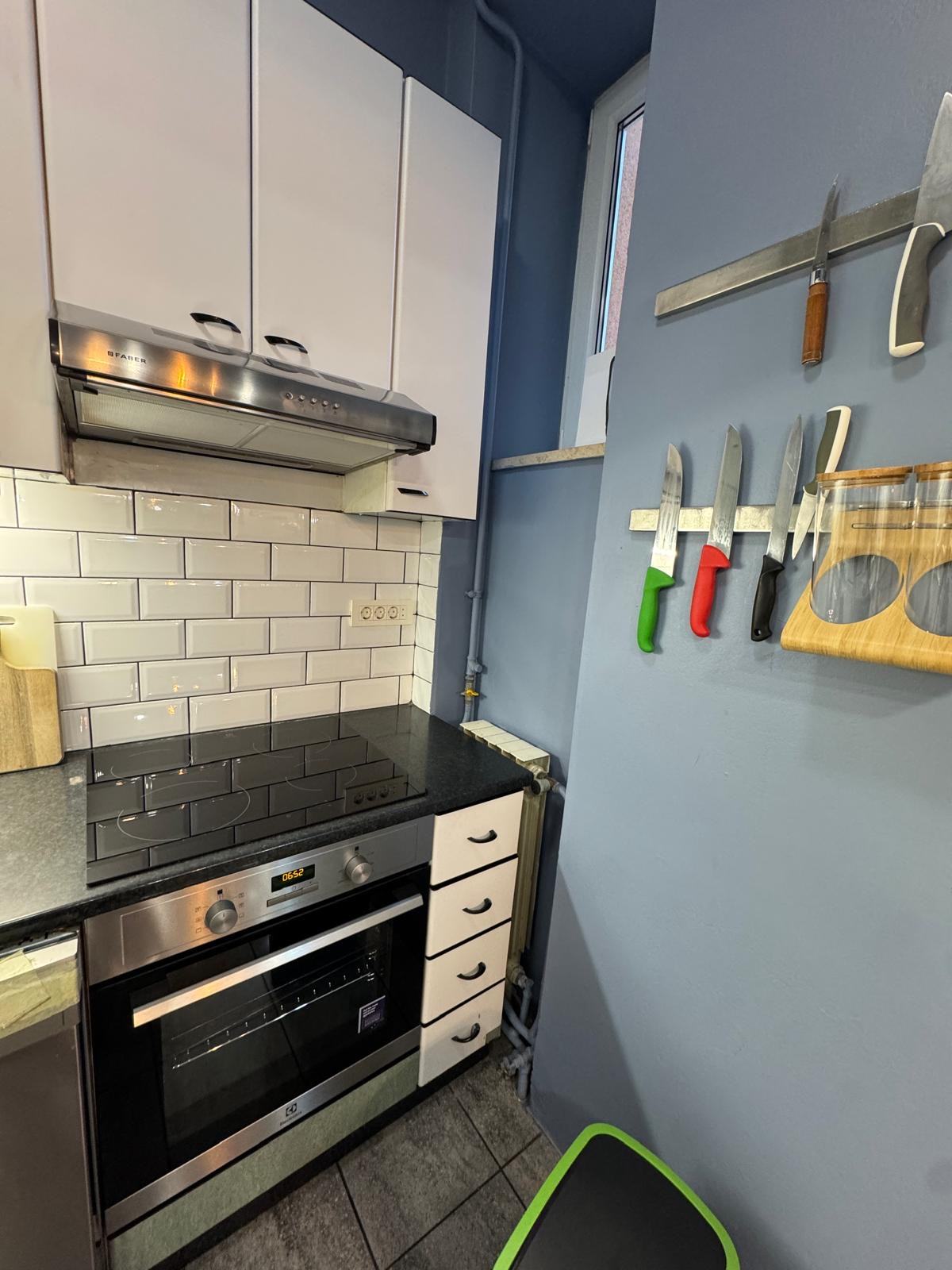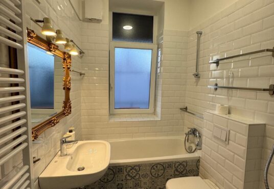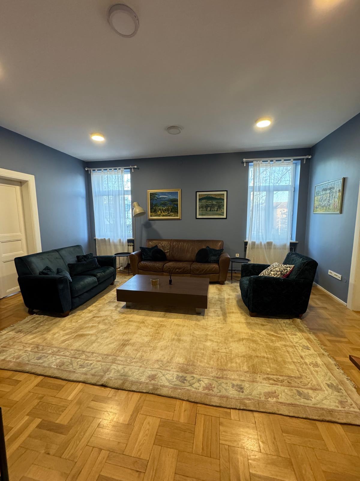 A spacious, comfortable three bed apartment for rent, located on the second floor of a residential building.